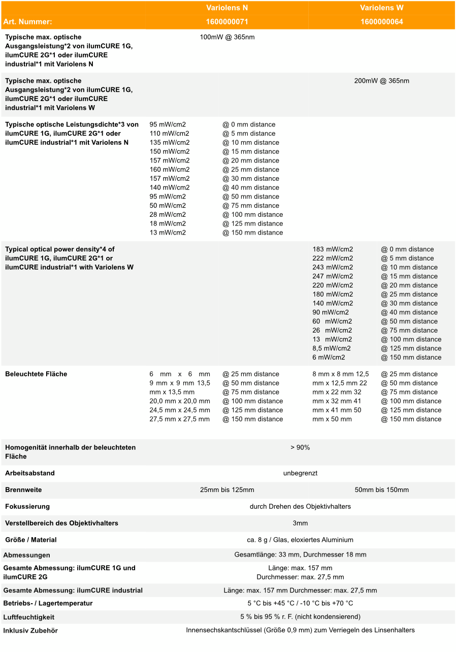 Die Vario-Objektive N und W sind als Zubehör erhältlich, um an den Belichtungseinheiten der ilumCURE-Serie angebracht zu werden. Sie dienen dazu, größere Flächen, auf die Klebstoff aufgetragen wurde, homogen und effizient zu härten.