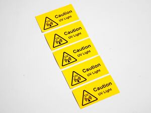 - 'Caution UV Light' Gefahrenwarnschild.