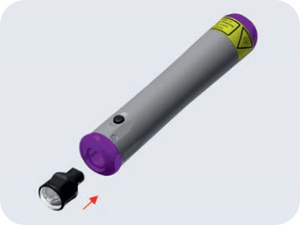 - Die Standard-Beleuchtungsspitze des ilumCURE durch vorsichtiges Ziehen nach vorne abnehmen.