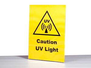 - 'Caution UV Light' Gefahrenwarnschild.